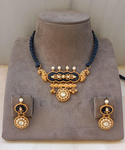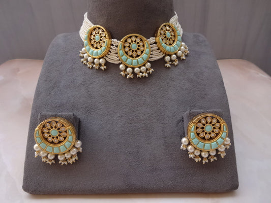 Aqua Enamel Kundan Choker Set with Pearl Layers