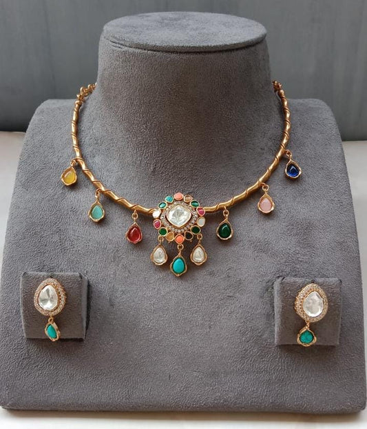 Royal Polki Choker Set with Pearl Drops & Jhumka Earrings