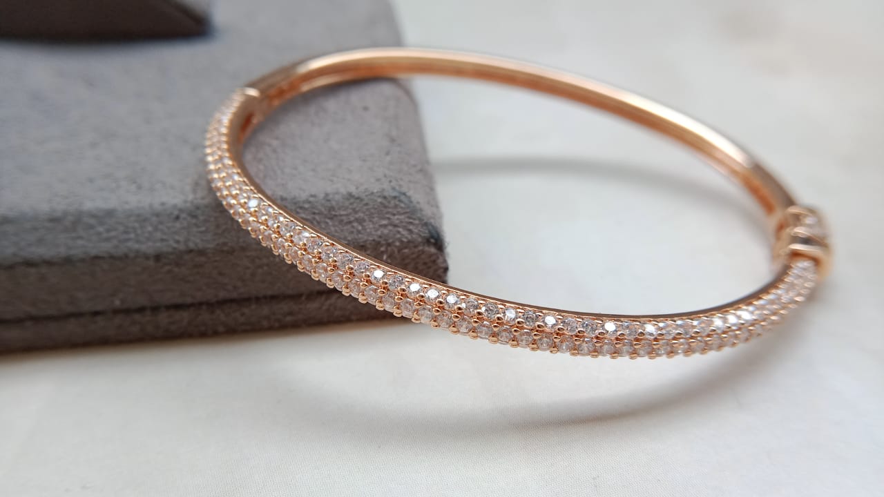 This Delicate Openable AD Bracelet is designed for women who love minimal elegance with a touch of sparkle. Crafted with shimmering American Diamonds, the bracelet features a sleek and refined design that enhances both everyday and festive looks. The openable mechanism ensures easy wearability and a secure fit, making it a perfect blend of comfort and style. Lightweight, graceful, and timeless—this bracelet is ideal for gifting or adding a subtle shine to your jewellery collection.
