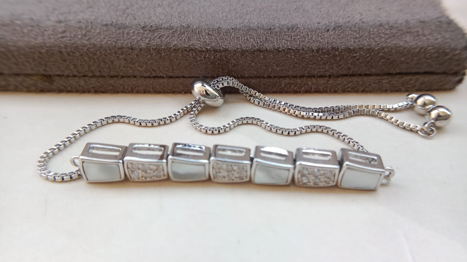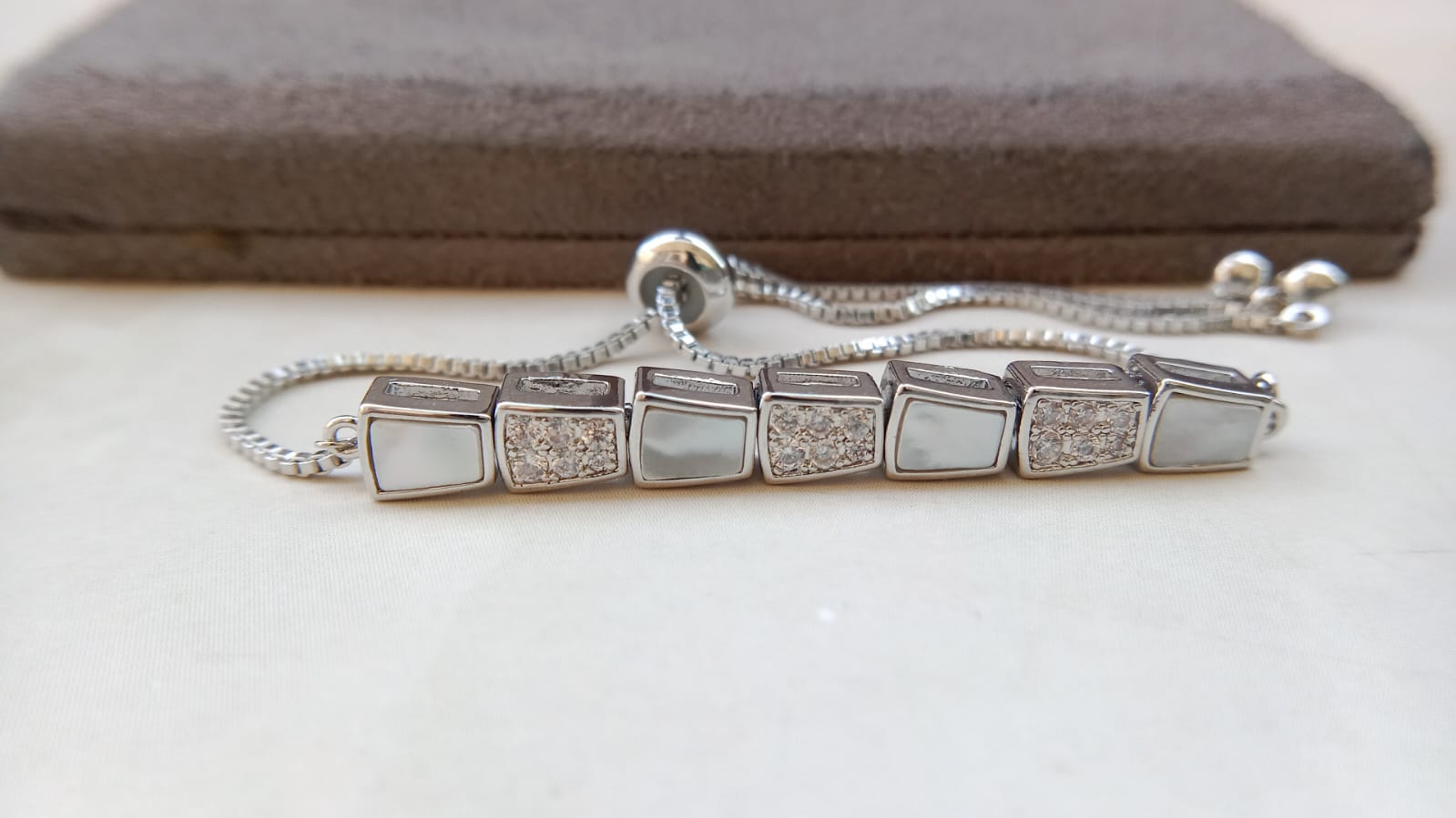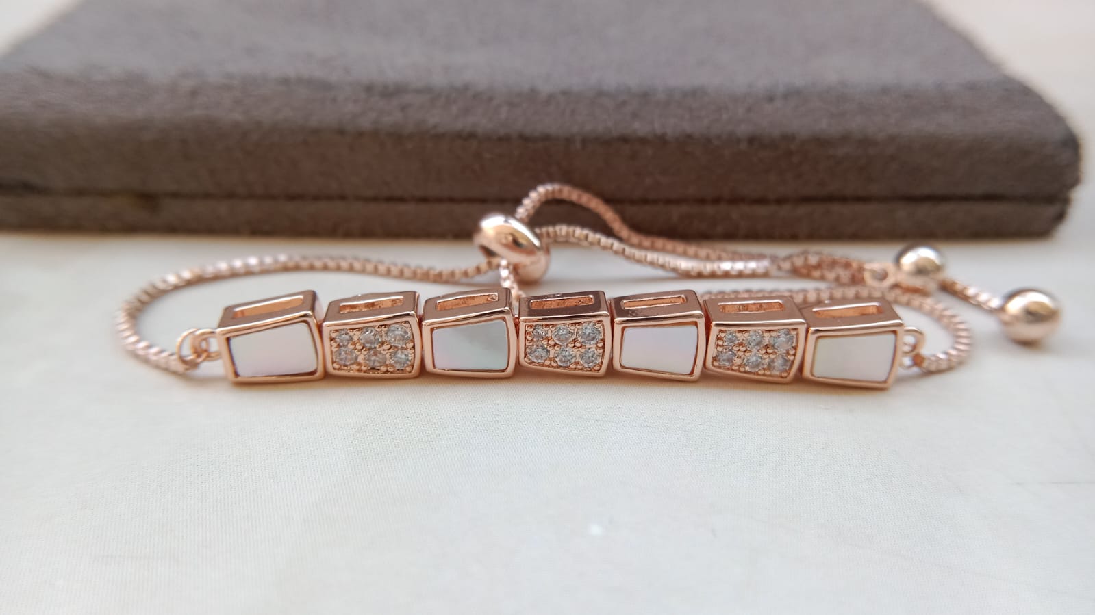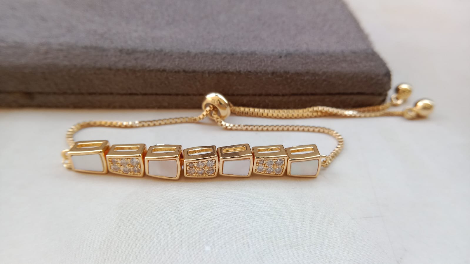 The Elegant Marquise Sparkle AD Bracelet brings a sophisticated shine to your wrist with its beautifully arranged marquise-cut American Diamonds. Each stone is carefully set to create a graceful, elongated pattern that enhances the bracelet’s luxurious appeal.