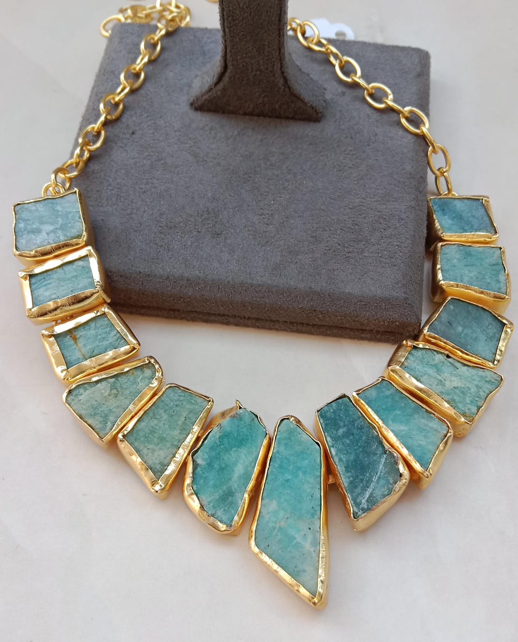 Gold plated fusion necklace with natural stones