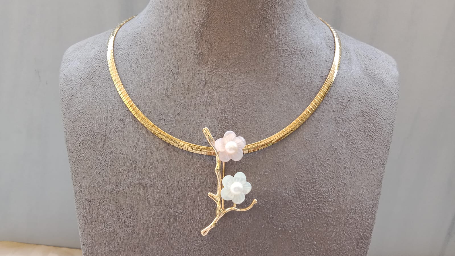 Celebrate elegance and versatility with the gold-plated pendant necklace, featuring two beautifully crafted flower motifs in contrasting pink and white colors, skillfully detailed on Mother of Pearl (MOP) stones. This pendant is designed for modern wearers who appreciate style with function: the pendant is detachable and can be worn as a brooch, adding flexibility to your accessory collection. Perfect for festive occasions, office wear, or gifting, this piece effortlessly blends color, craftsmanship, and practicality.