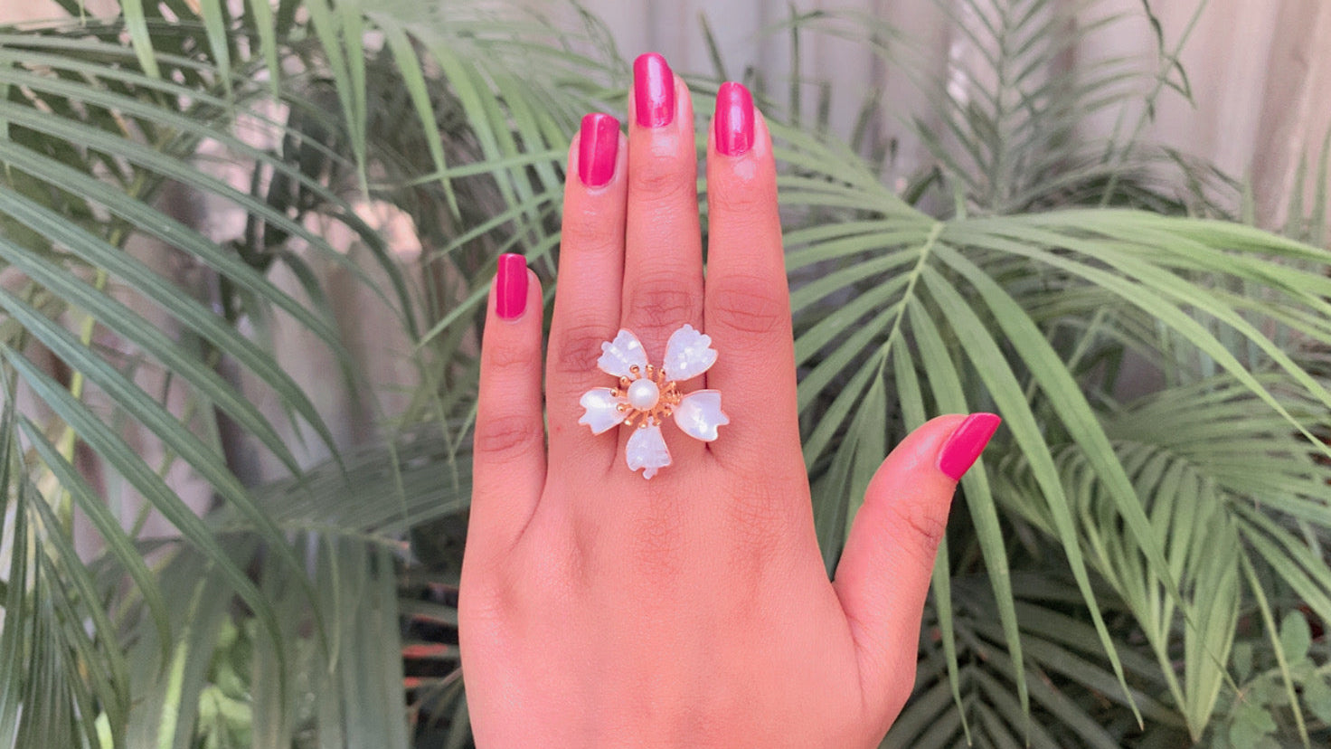 Golden White Pearl Floral Ring