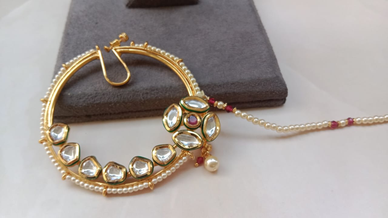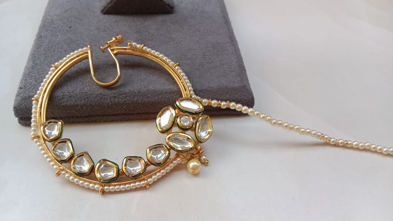 Golden Kundan Nosering – Traditional Ethnic Nath for Women