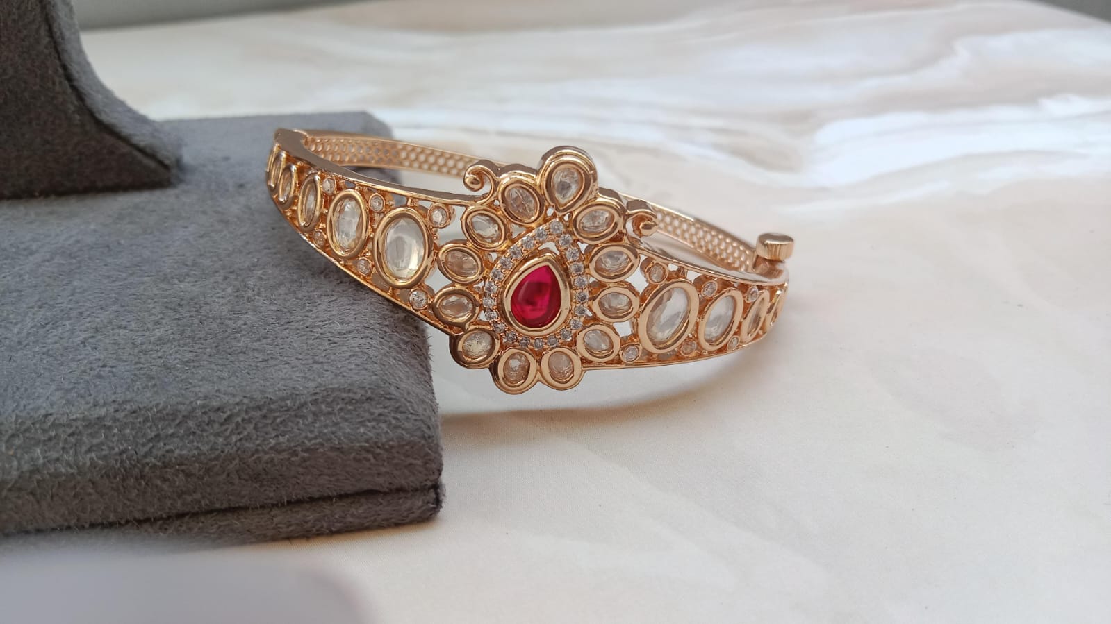 Polki Diamond Look Bracelet with Golden Plating